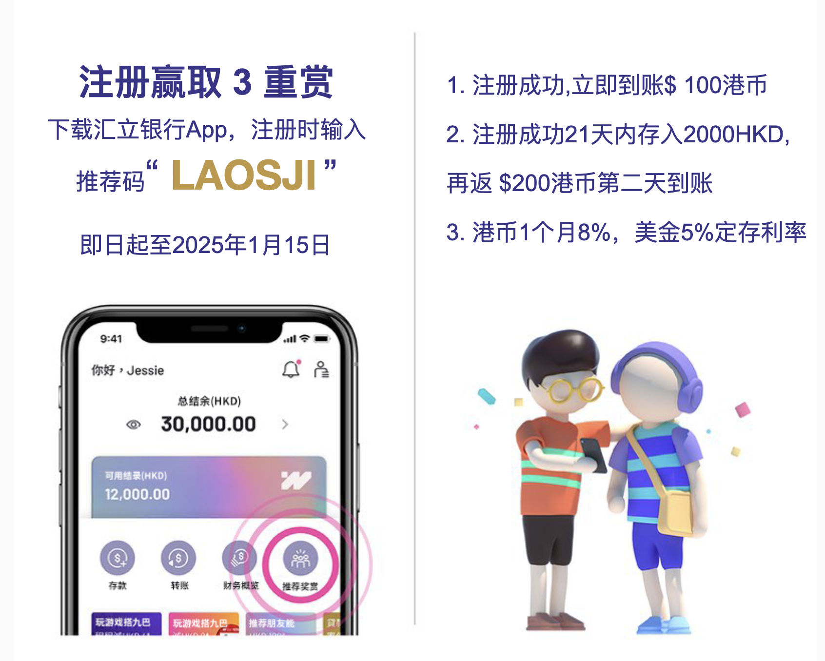 - 存2000HKD,再奖励200HKD
